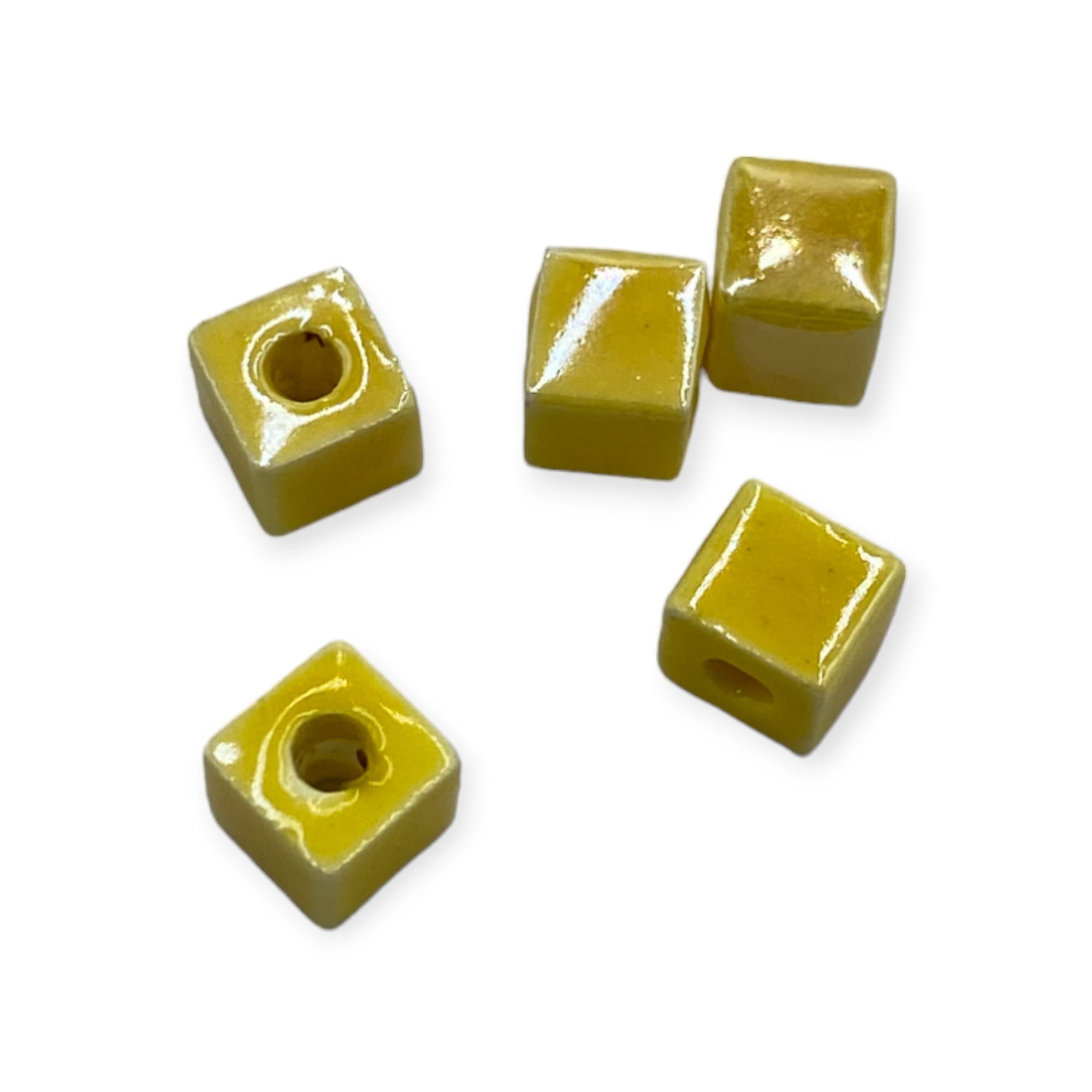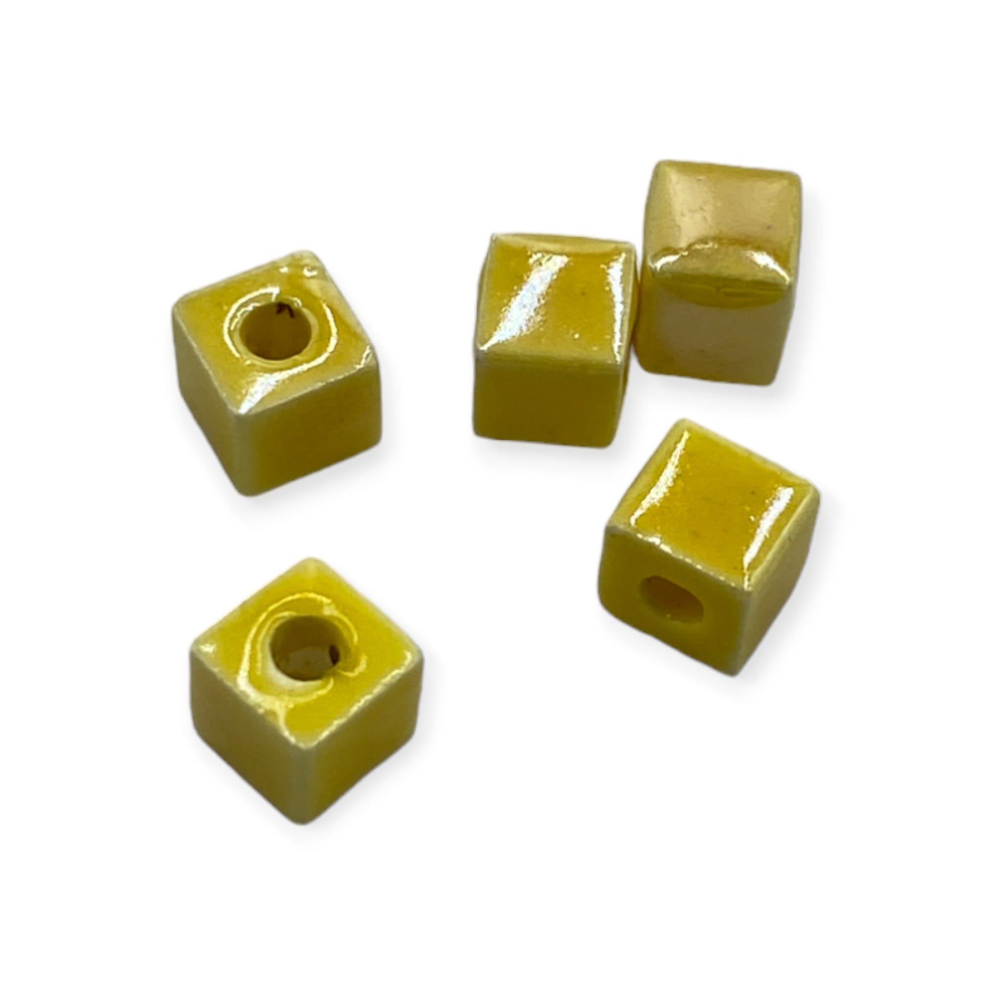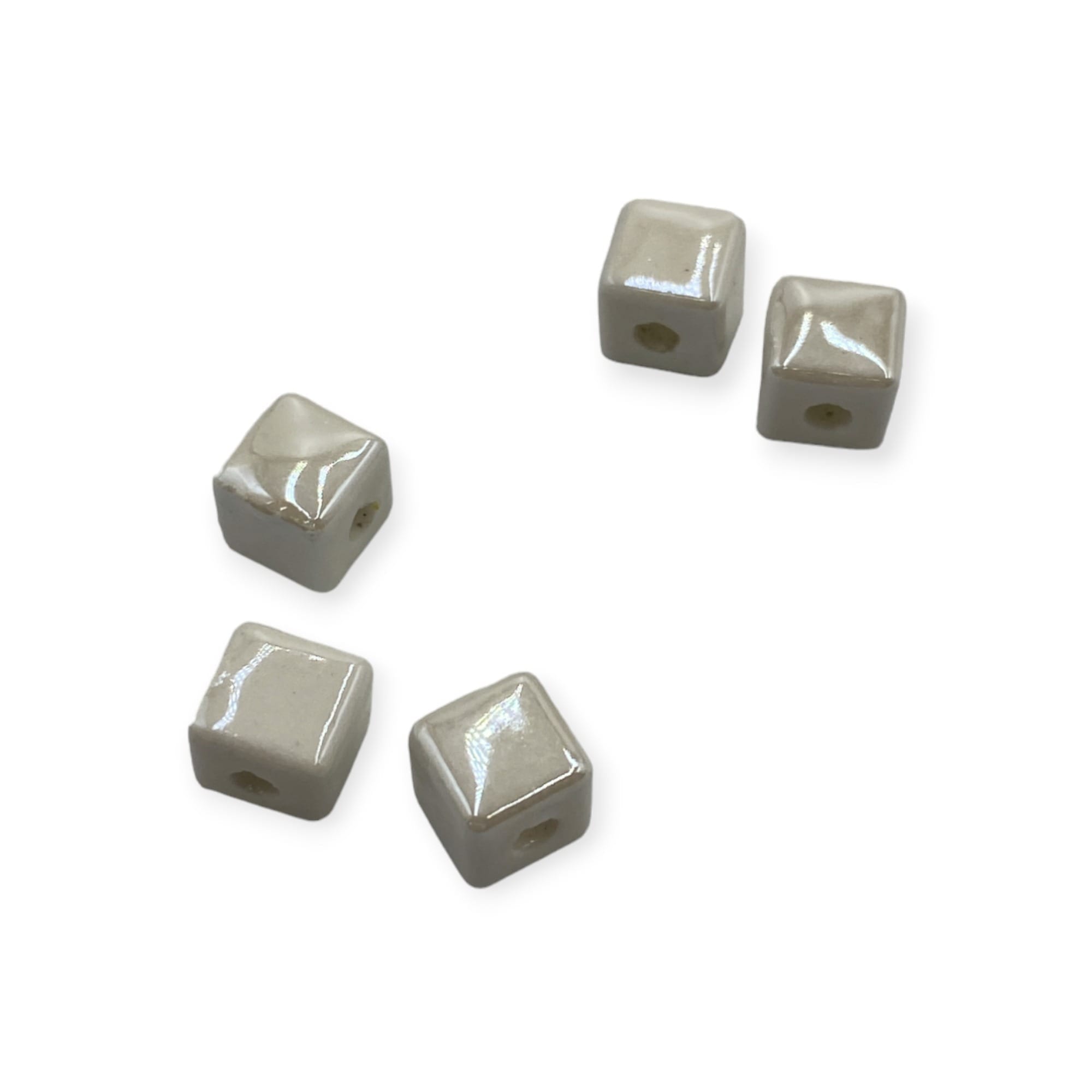Κεραμικές χάντρες κύβος. Ποσότητα: 5 τεμάχια Χρώμα: λευκό
