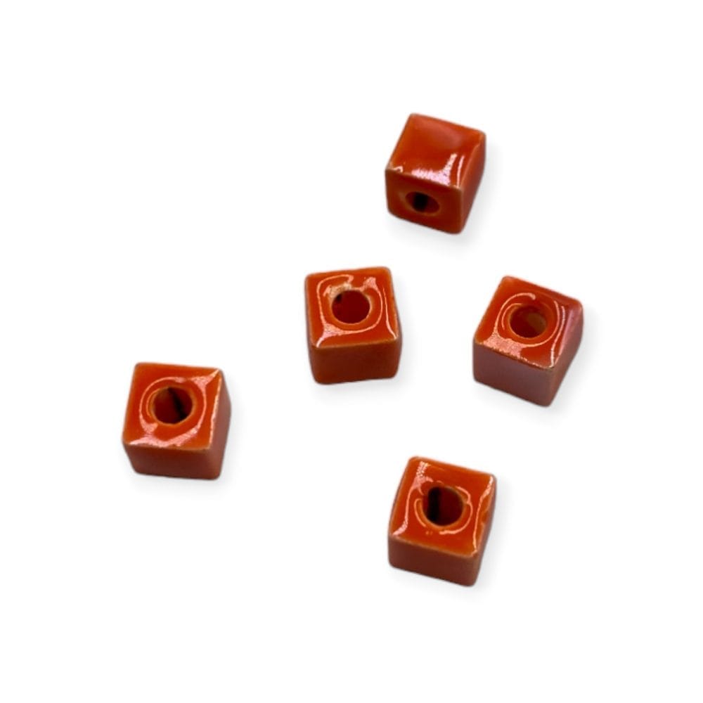 Κεραμικές χάντρες κύβος. Ποσότητα: 5 τεμάχια Χρώμα: πορτοκαλί