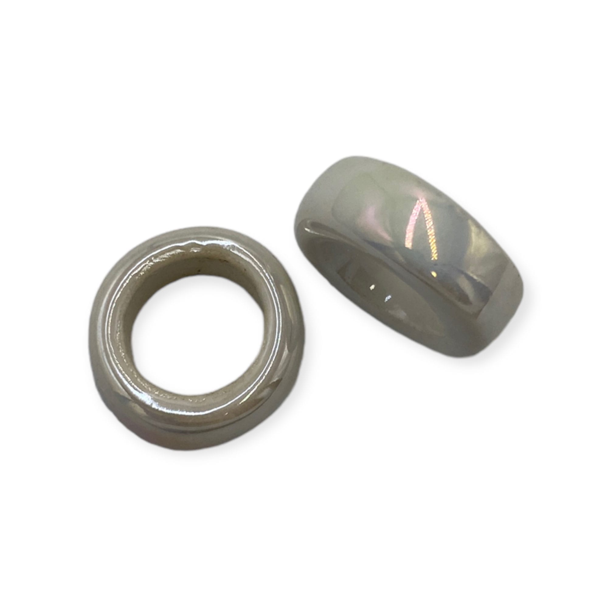 Κεραμικές χάντρες . Ποσότητα: 2 τεμάχια. Ελληνικής κατασκευής. Εσωτερική διάμετρος: 11mm. Χρώμα: λευκό